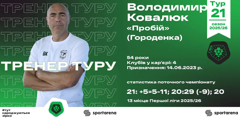 Володимир Ковалюк – кращий тренер 21 туру VBET Першої ліги!