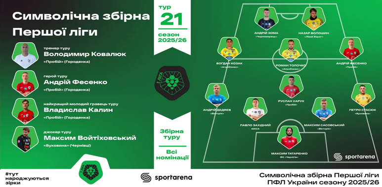 Два гравці НК “Пробій” у збірній 21 туру VBET Першої ліги