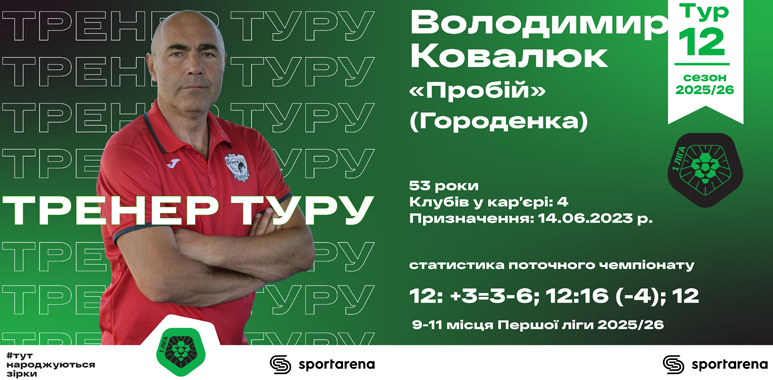 Володимир Ковалюк – кращий тренер 12 туру VBET Першої ліги!